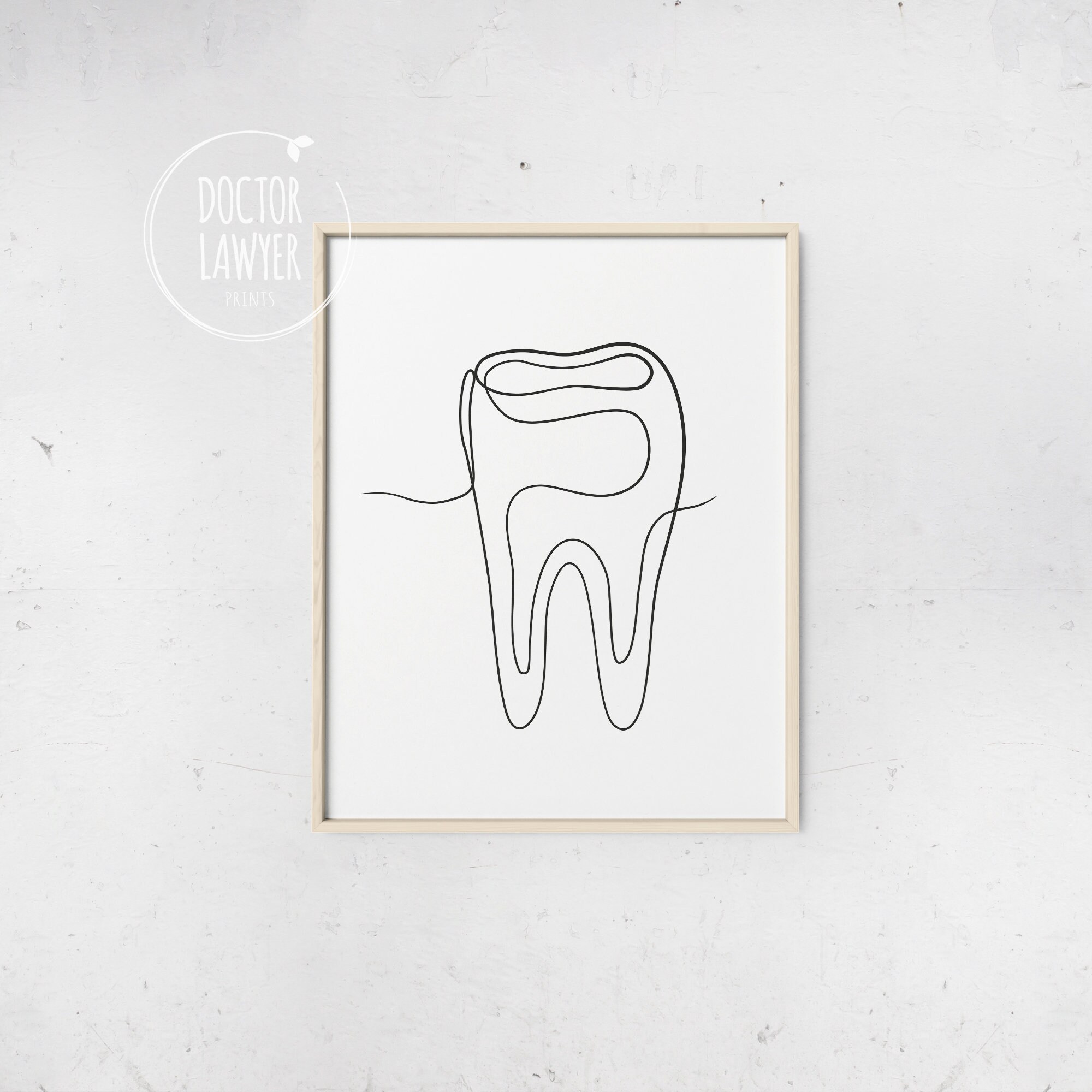 Tooth One Line Art Dentist Gift Dentist Anatomy Art Dentist Etsy